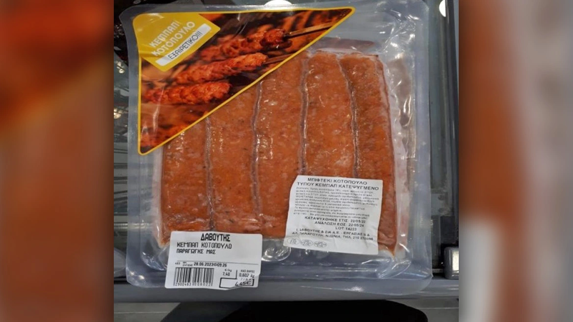 Συγκεκριμένα ο ΕΦΕΤ και ειδικότερα η Περιφερειακή Διεύθυνση Αττικής, κατά τη διενέργεια ελέγχων προέβη σε δειγματοληψία, στην επιχείρηση «ΚΡΕΑΤΑ ΠΟΙΟΤΗΤΟΣ ΔΑΒΟΥΤΗΣ ΑΕ» στην οδό Εργασίας 15 & Παναγούλη, στην Νέα Ιωνία Αττικής του προϊόντος: «Κεμπάπ κοτόπουλο-Μπιφτέκι κοτόπουλο (τύπου κεμπάπ) κατεψυγμένο» βάρος: 600 γρ., αριθ. παρτίδας: L 14223, ημ. ανάλωσης έως: 22.05.2024.