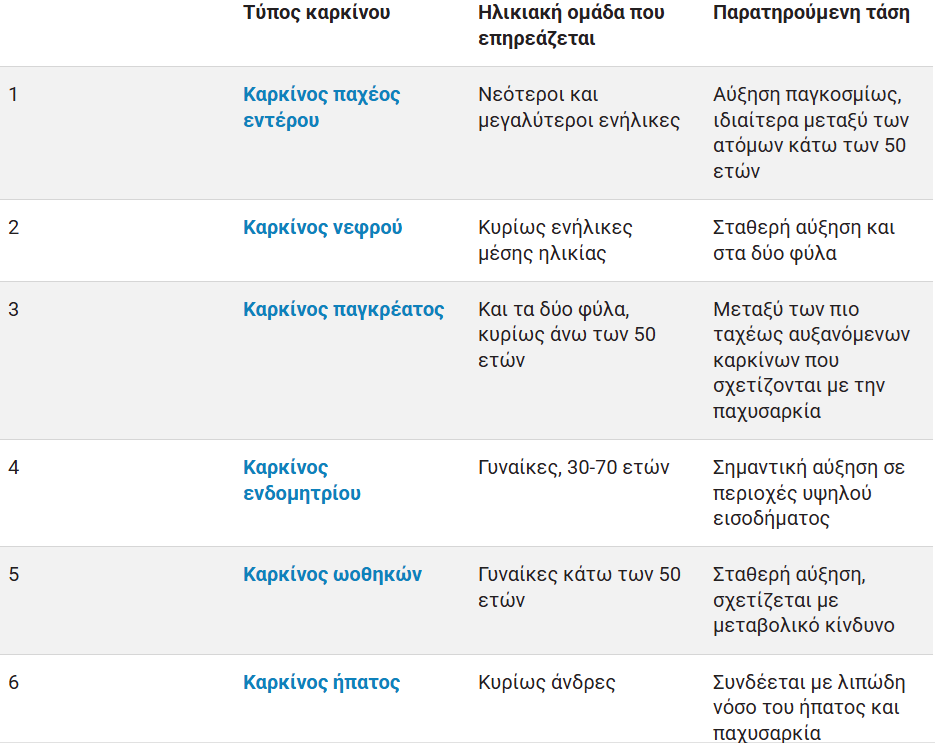 Τα αποτελέσματα αποκάλυψαν μια παγκόσμια αύξηση στους εξής 6 τύπους καρκίνου που συνδέονται στενά με την παχυσαρκία: