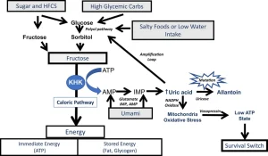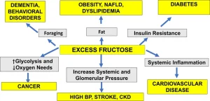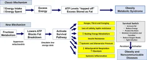 Ο μεταβολισμός της φρουκτόζης στο σώμα προκαλεί μία πτώση της τριφωσφορικής αδενοσίνης (ATP), ενός στοιχείου που παρέχει ενέργεια για τις κυτταρικές διεργασίες του σώματος.