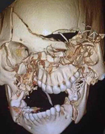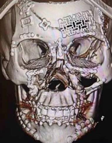 Ο χειρουργός έγραψε κάτω από την εικόνα #1 που βλέπετε: «Αυτή η σάρωση δείχνει την ολοκληρωμένη αναδόμηση του προσώπου. Χάρη σε μια ειδική πολυεπιστημονική ομάδα, η ασθενής αναρρώνει καλά».