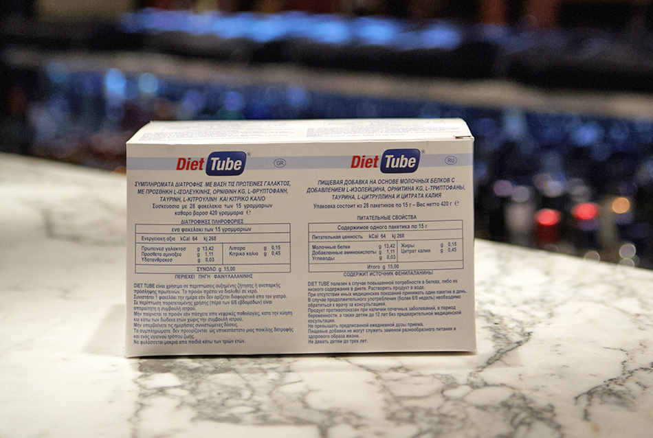 Τα πρωτεϊνούχα σκευάσματα Diettube δεν είναι φάρμακα, αλλά συμπληρώματα διατροφής αποτελούμενα από πρωτεΐνες γάλακτος υψηλής βιολογικής αξίας, εμπλουτισμένες με αμινοξέα l-ισολευκίνη, ορνιθίνη, l-τρυπτοφάνη, ταυρίνη και l-κιτρουλίνη, που συντελούν στην άμεση απώλεια βάρους σε καθαρό λίπος.