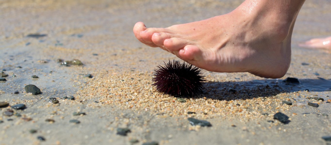 Αν πατήσετε αχινό, ο πόνος είναι οξύς στην αρχή και σε περίπτωση που τα αγκάθια του έχουν μπει βαθιά στο δέρμα, ο πόνος είναι και διαρκής μέχρι να καταφέρετε να τα βγάλετε.